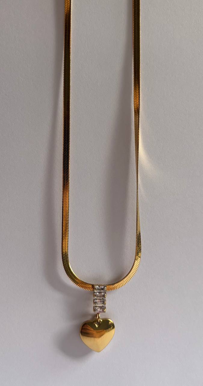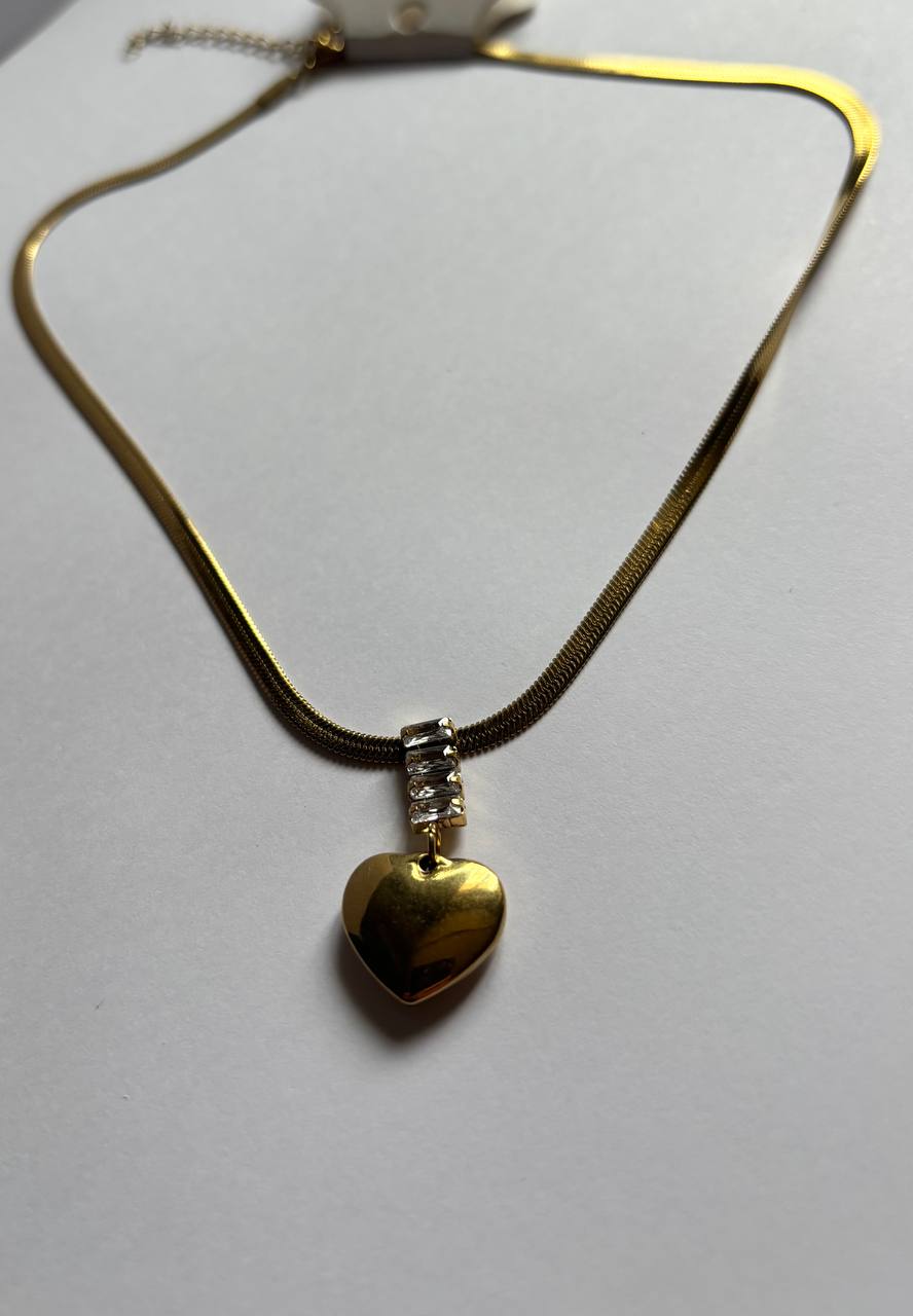 Un collier pendentif cœur doré serti de petits zircons